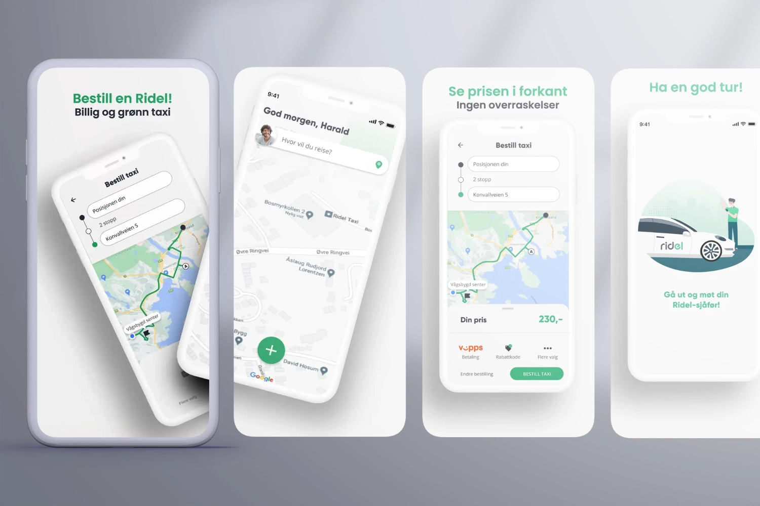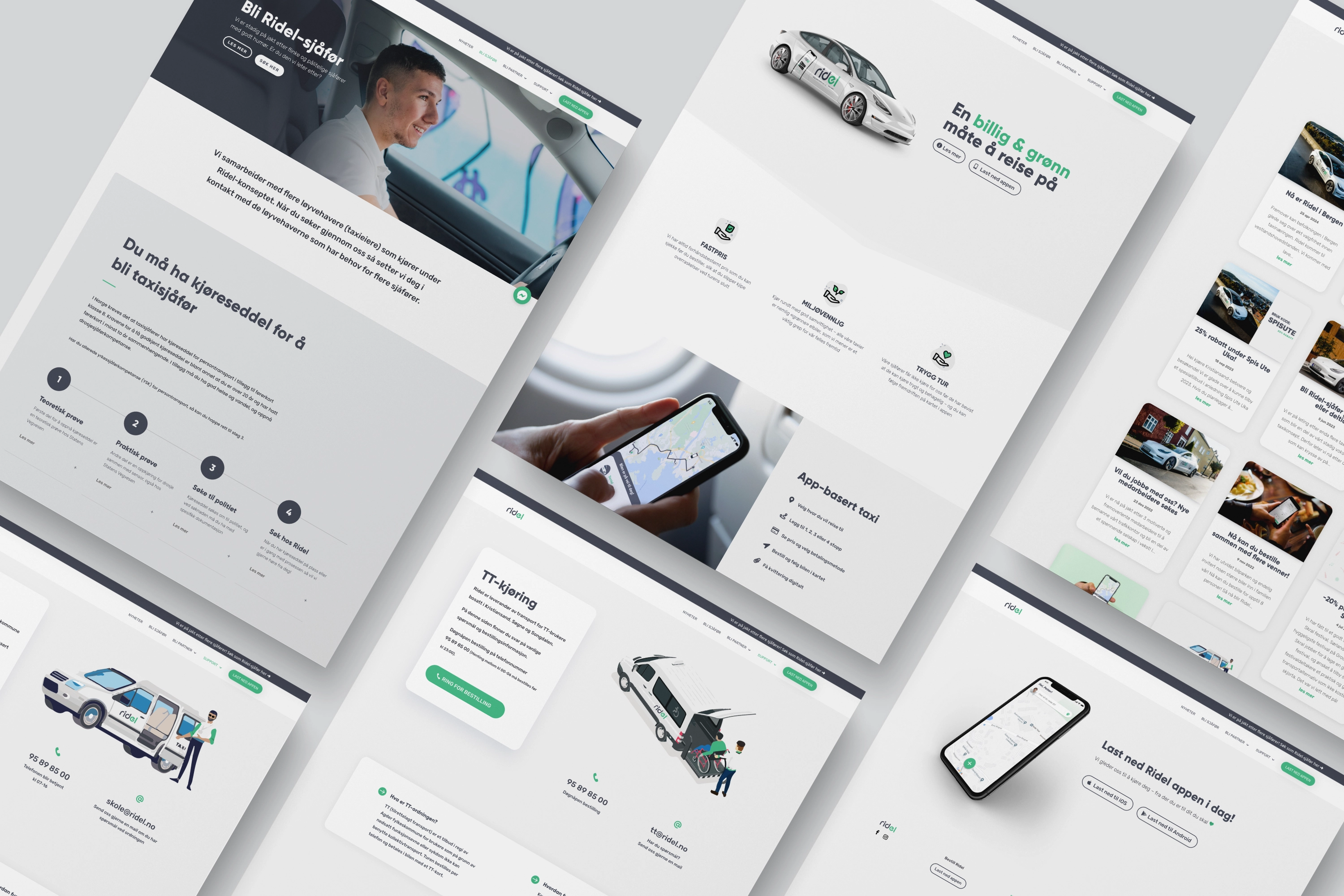 I løpet av fire år jobbet jeg som merkevareansvarlig og designer for Ridel Taxi. Jeg utviklet hele konseptet fra bunnen av – navn, logo og visuell identitet – og videreførte dette i alle flater.